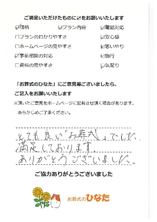 満足のいく葬儀にして戴きありがとうございました。
