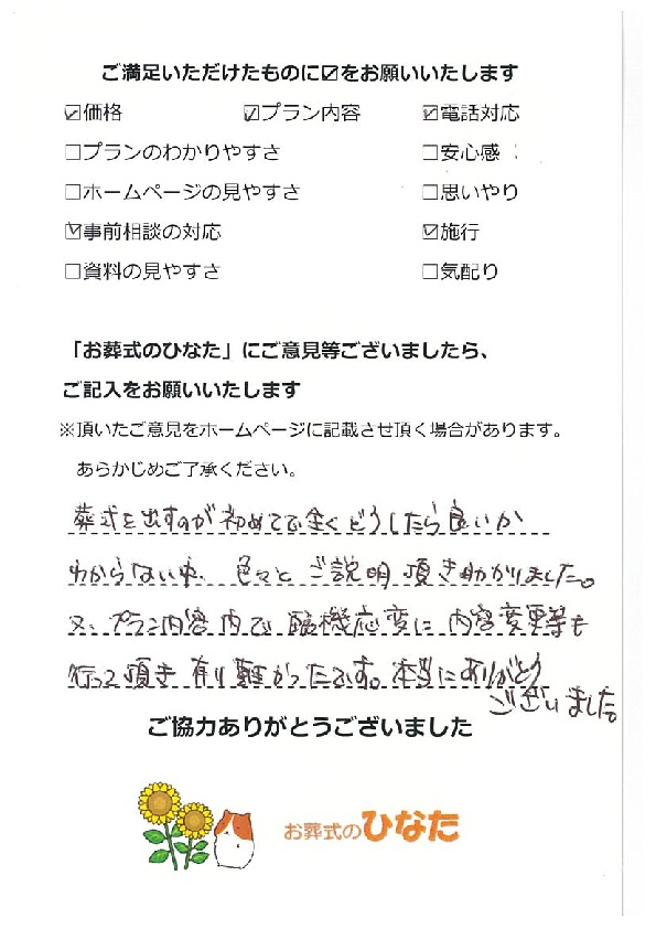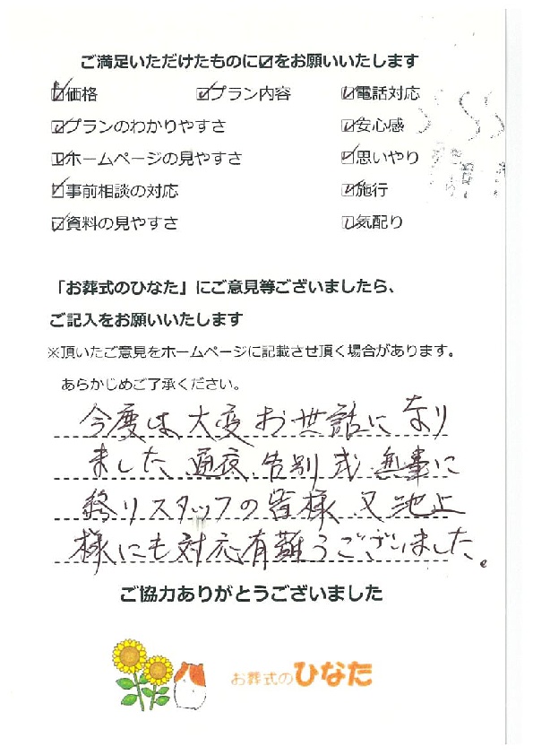 遺族全員、お葬式のひなた様に感謝しています。