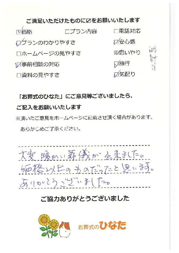 大変暖かい葬儀が出来ました