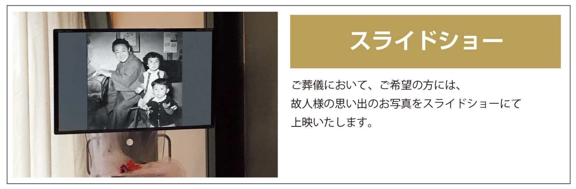 故人様の思い出のお写真をスライドショーで上映いたします。