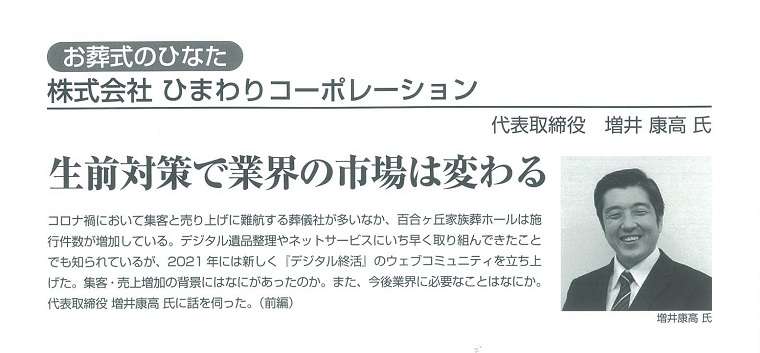 コロナ禍においても百合ヶ丘家族葬ホールが選ばれている理由や背景について弊社代表 増井のインタビュー記事が掲載されています。